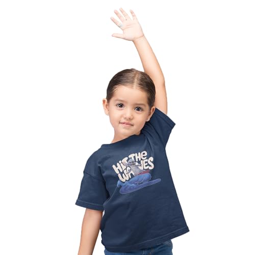 Disney Stitch "Hit The Waves" surfing flickor T-shirt - rolig tecknad grafisk T-shirt för sommarstranddagar - surfstil kläder, Marin, 8 �r