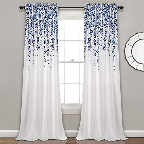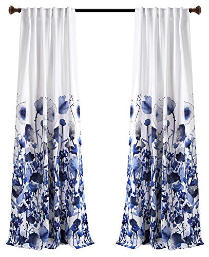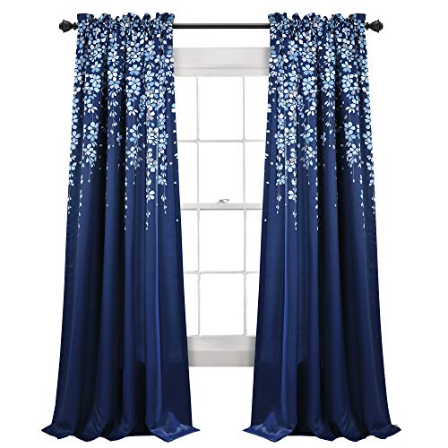 Lush Decor fönstergardin, motiv: vinande blommor, ljusfiltrering, 132 cm B x 244 cm L 5,1 cm huvudlist, marinblå och blå – charmiga, moderna gardiner med blommönster för vardagsrum, matsal