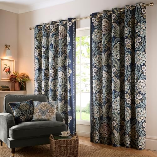 Appletree – marinblå botaniska gardiner, B 168 x L 137 cm (66 x L 54 tum) – mörkblå gardiner med öljetter med blommor – vintage blommiga gardiner och draperier för sovrum och vardagsrum – blå