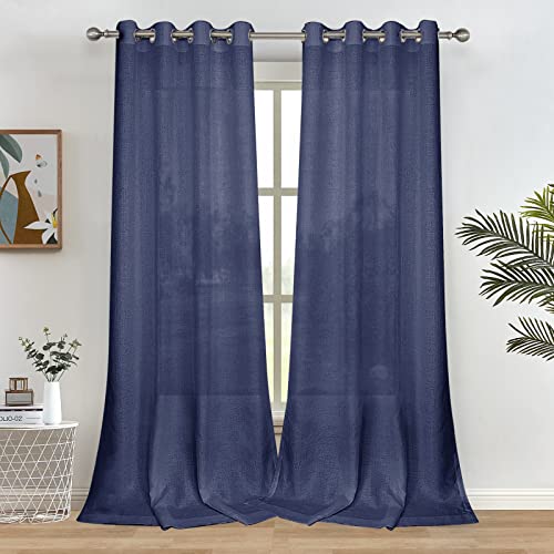 Melodieux Marinblå halvgenomskinliga gardiner 234 cm långa för vardagsrum sovrum lin linne genomföring voile draperier, 132 x 244 cm (2 paneler)