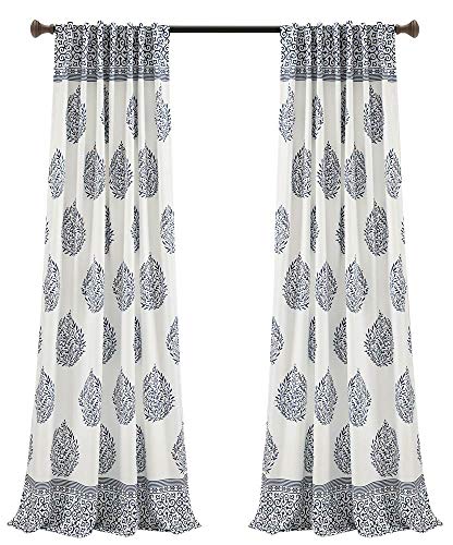 Lush Decor Gardiner med botaniskt trädgårdsmotiv, tryck med blommor och fåglar, ljusfiltrerande, för vardagsrum, matsal och sovrum, set med ett par, 132 x 213 cm, marinblå