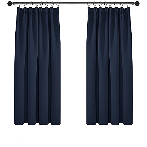 Deconovo supermjuka gardiner, termiskt isolerade mörkläggningsgardiner med pennveck för sovrum 46 x 54 cm, marinblå, ett par