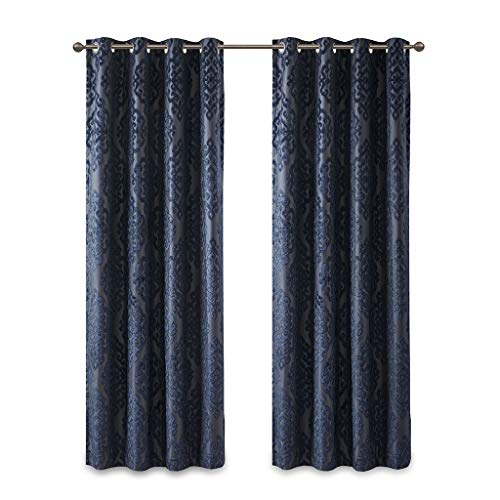 SUN SMART Mirage 100% totalt mörkläggningsfönster, stickad Jacquard damast rum mörkrande gardiner panel med öljettsockel, 50 x 84, marinblå