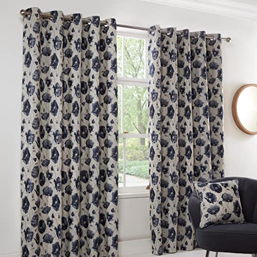 Sundour Vallmo marinblå gardiner Chenille Jacquard 90 x 72 öljett ring topp gardin par