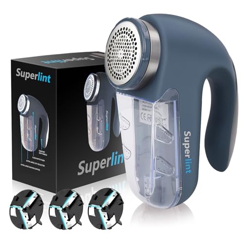 SUPER LINT Elektrisk tröja rakapparat ludd piller noppborttagare för tyg fleece gardiner kläder, marinblå & silver