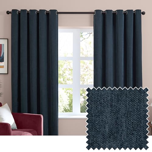 Fusion - Blå gardiner, B 168 x L 229 cm (66 x L 90 tum) - 2 x paneler - öljettgardiner i marinblå - termiska gardiner för sovrum/vardagsrum - Mörkblå gardiner och draperier - dörrgardiner -