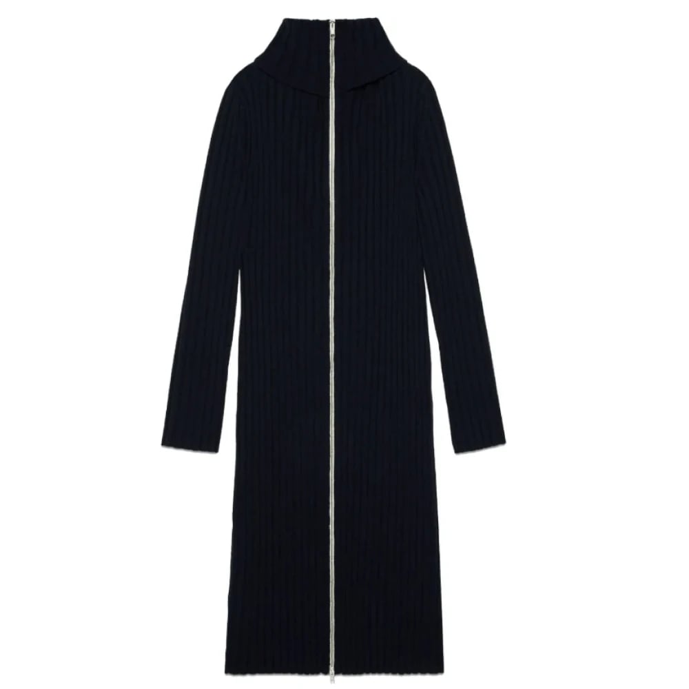 Gucci, Klänningar , Dam, M, Kashmir, Marinblå Ribbstickad Klänning
