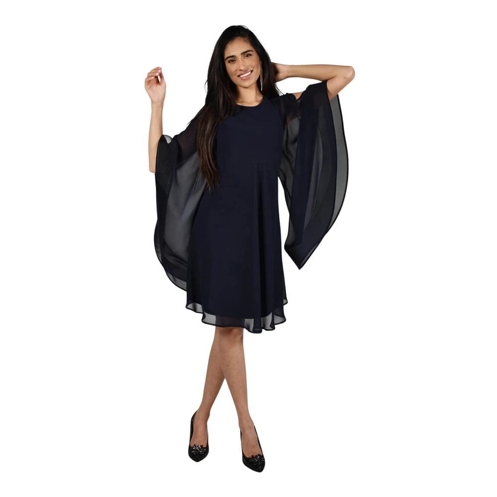Frank Lyman, Klänningar , Dam, S, Polyester, Marinblå Klänning med Volang Ärmar
