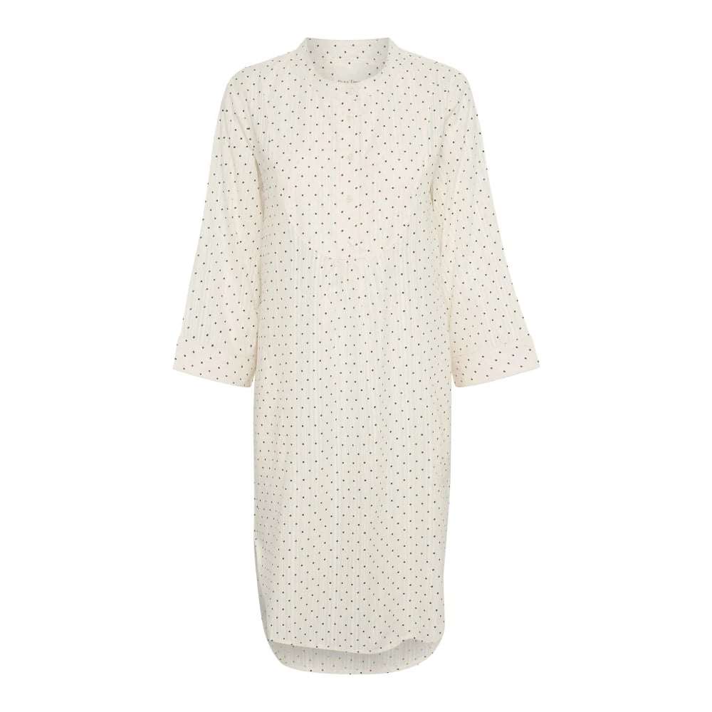 Part Two, Klänningar , Dam, S, Bomull, Mörk marinblå prickig klänning med 3/4 ärmar