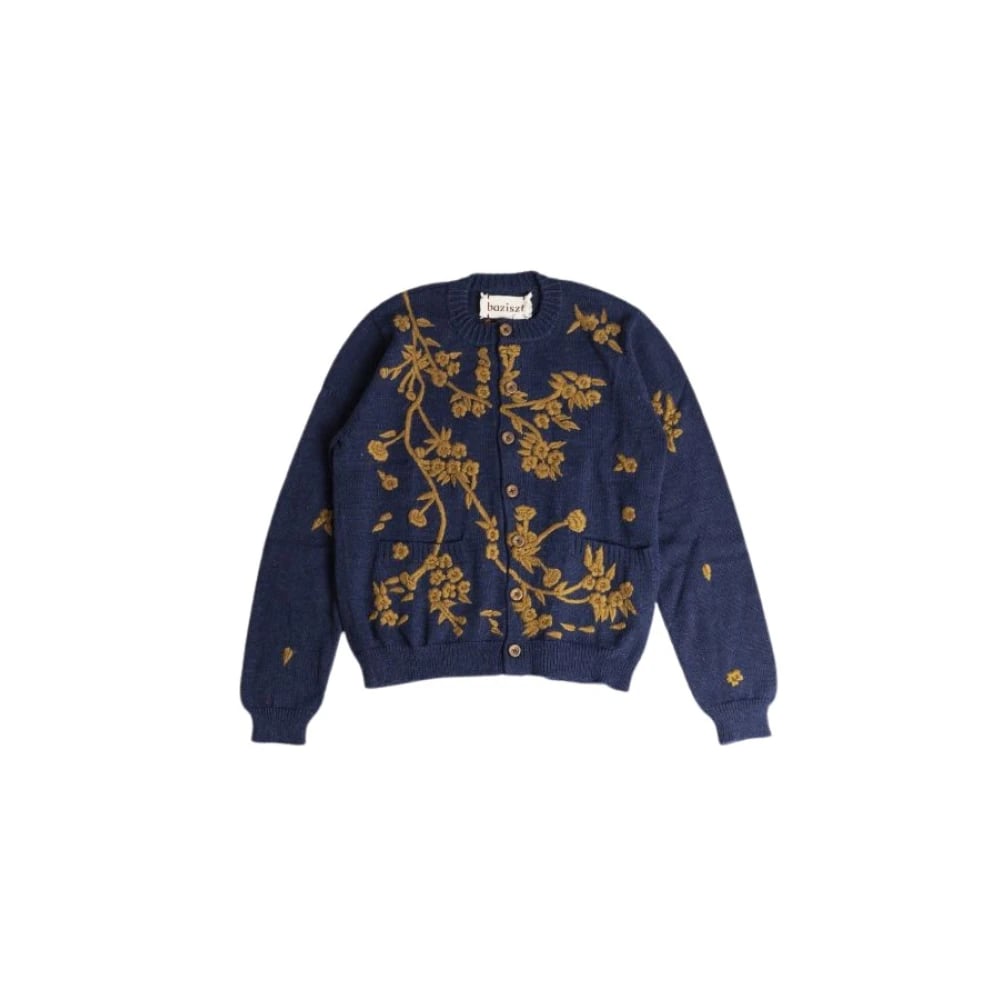 Baziszt, Stickade Tröjor , Dam, L, Marinblå Blommig Kofta