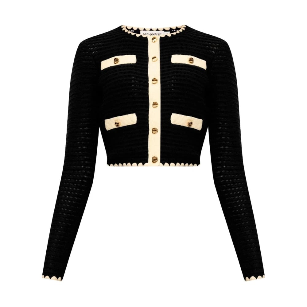 Self Portrait, Stickade Tröjor , Dam, M, Bomull, Marinblå Virkad Kofta