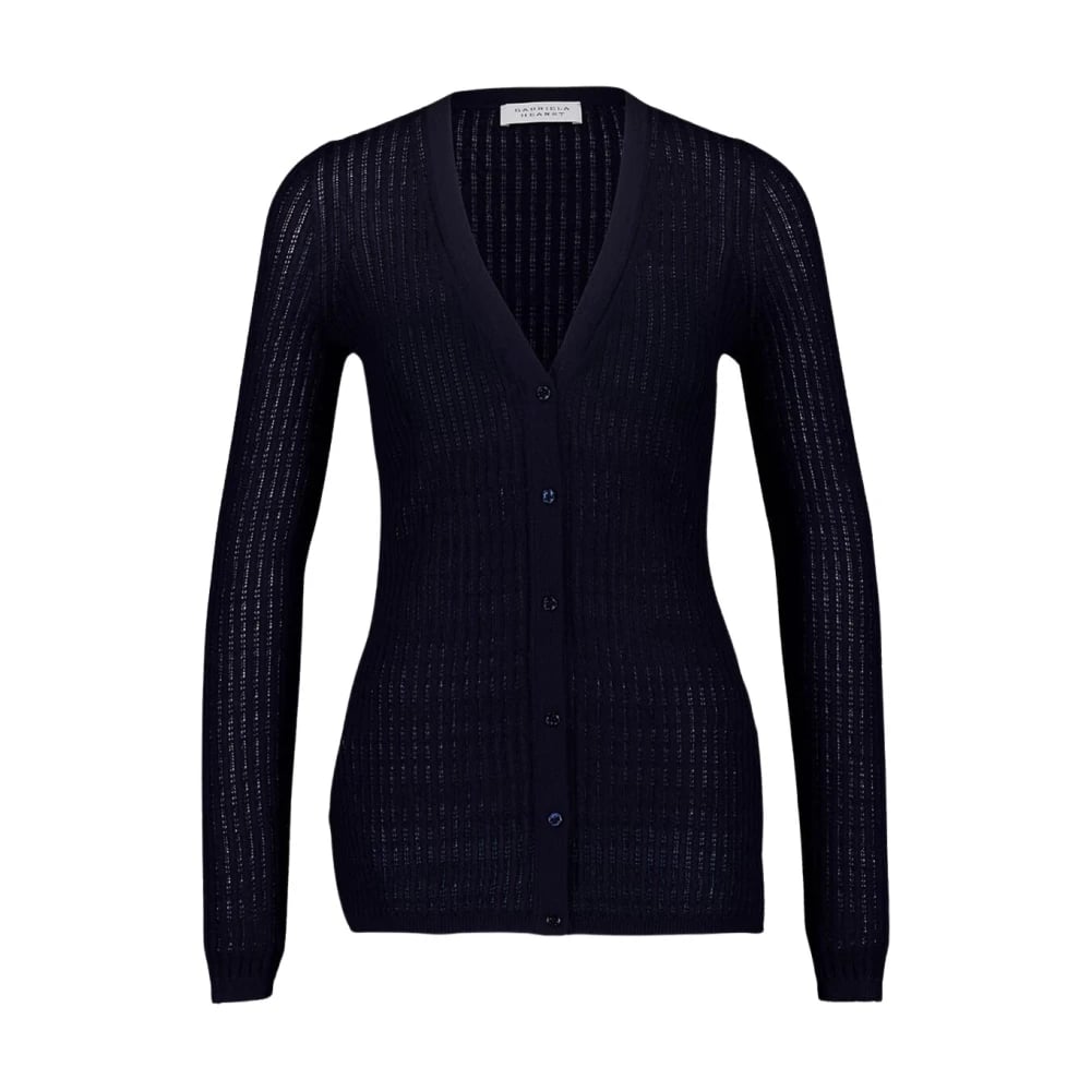 Gabriela Hearst, Stickade Tröjor , Dam, M, Kashmir, Mörk Marinblå Pointelle Stickad Kofta