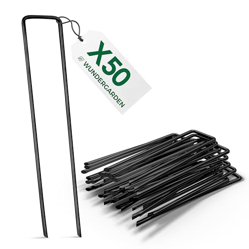 WUNDERGARDEN - 50 markankare för ogräsfilt, markspikar av stål i en uppsättning för att fästa ogräsfilt, ogräsfolie eller för camping - markspik, markankare, jordankare - 150x25mm - Ø2,7mm