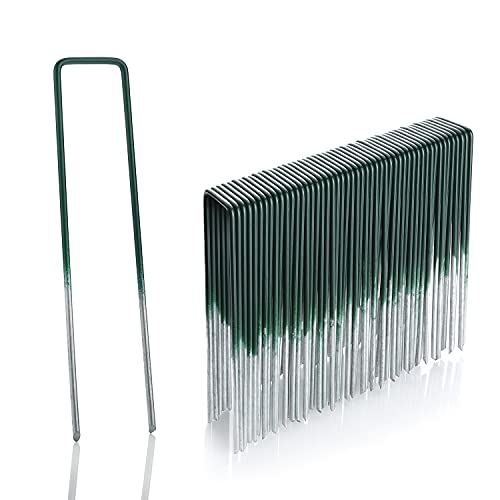 GardenMate 50 st Markankare för konstgräs - Halvgrön, varmförzinkad ståltråd, 150mm lång - 25mm bred, 2,9mm tjock - platt huvud