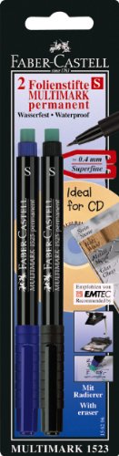 FABER-CASTELL 156296 - Marker Set MULTIMARK permanent, tjocklek S, 0,4 mm, 2 universalmarker, svart och blå