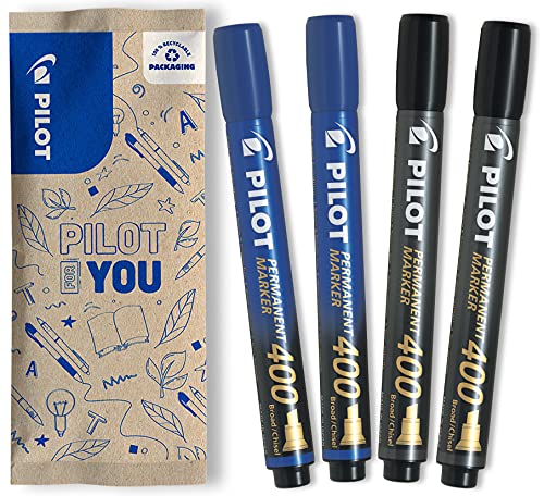 PILOT - 4 Pack SCA 400 - Permanent multi-surface Marker - Bred - Snedskuren Spets - 2 Blå, 2 Svart