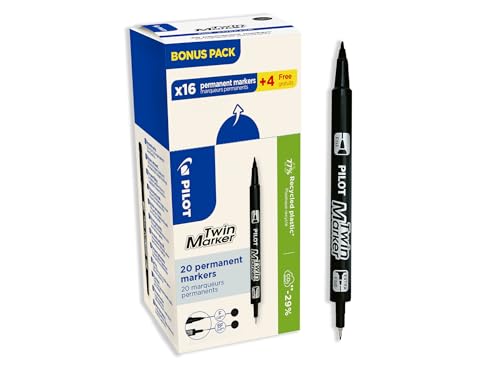 PILOT Set med 20 Twin Marker - 2-i-1 permanent markör - ultraexakt plottning på flera ytor - tillverkad av återvunnen plast - svart - fin och extra fin dubbelspets