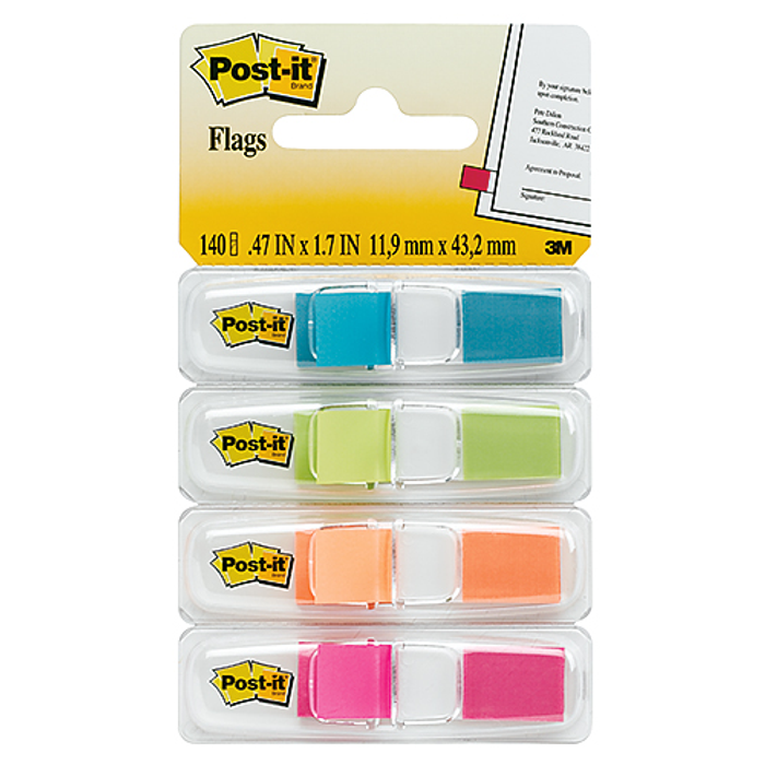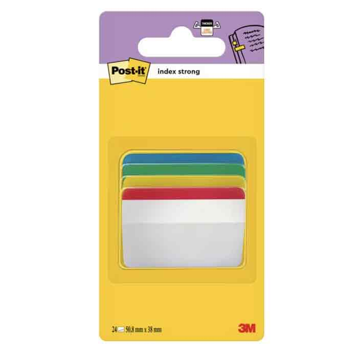 Märkflikar Post-it Index 676 Strong blå, grön, gul, röd 40st/fp