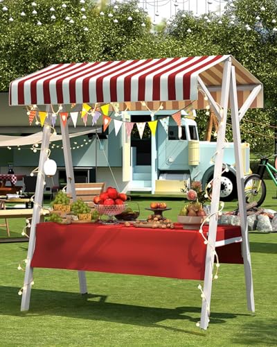 Marknadsstånd Hopfällbart Matstånd I Stål med Solskydd och LED-ljus, Gatumat, Snacks, Godis, Marknadsautomater, Mässor, Mässor, Bar, Monter(Red,Width 150cm(59"))