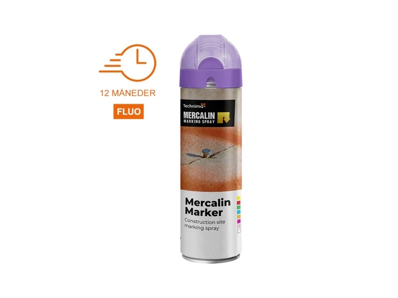 Mercalin Märkspray 500Ml - Fluo Lila, För Asfalt, Betong, Gräs, Grus, Trä, Sten Och Is