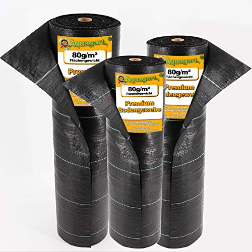 50 m x 2 m robust ogräsfolie 80 g/m² ogrässkydd från Aquagart I markväv ogräsväv I markväv ogräsfleece vattentät genomskinlig mulchfolie UV-fleece 10 markankare gratis