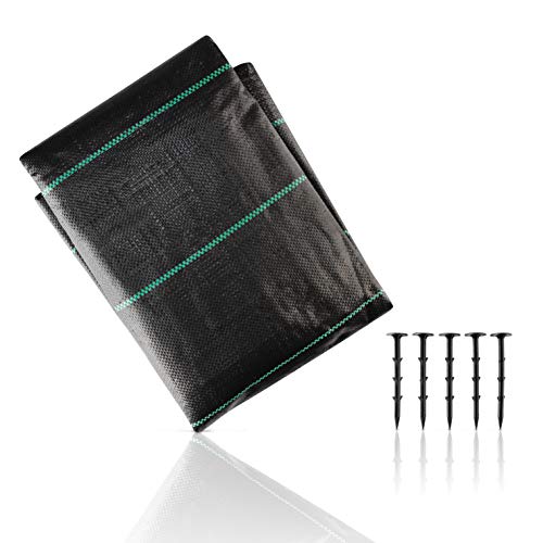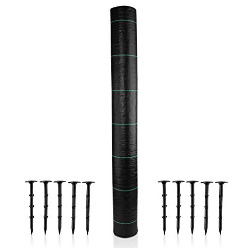 Ogräsfleece markväv mot ogräs med U-formad trädgårdstältpinnar, ogräsväv vattentätt mot ogräs, ogrästyg, trädgårdsfleece med UV-skydd, slittåligt band (25 m² (25 m x 1 m))