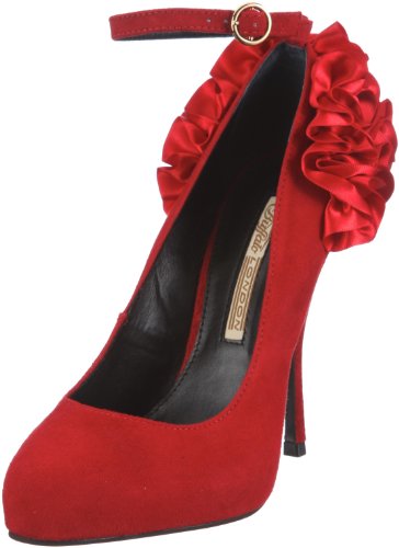Buffalo London Damer 19166-824 barn SUEDE FITA CETIM pumps, Röd Marlboro 02-39 EU