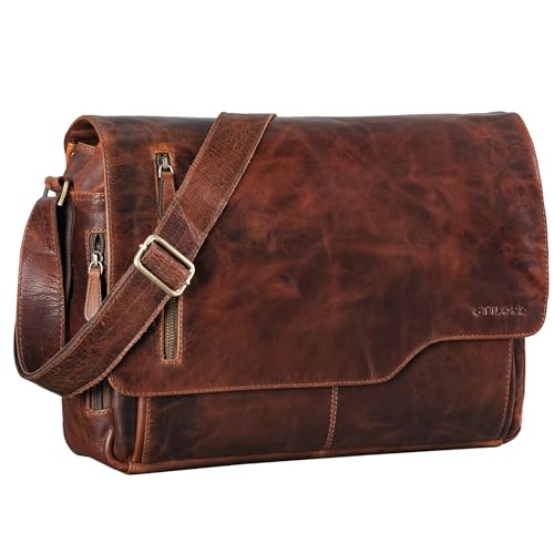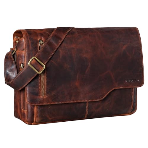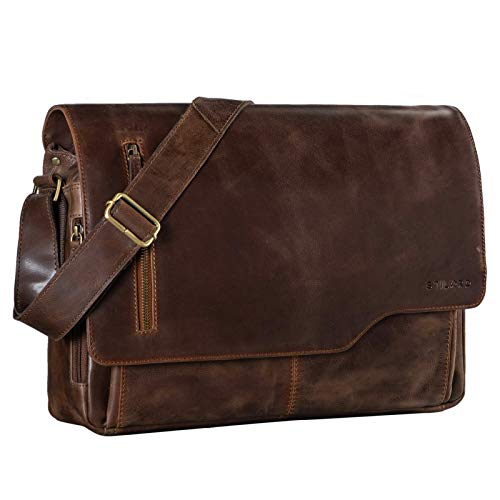 STILORD "Marlon" läderväska för herrar affär universitet kontor vintage axelväska stor DIN A4 med 15.6 tum laptopfack elegant aktväska av äkta nötkött läder Farbe:Florida-brun