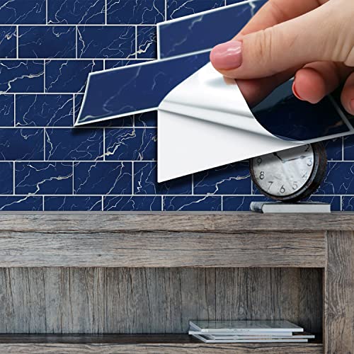 WALPLUS 28,5 x 14 cm@12 st blå marmor tunnelbana platta plattor klistermärke stänkstänk kakelfärg pinne på plattor skala och klistra självhäftande väggplattor klistermärken för kök badrum kakelöverföring