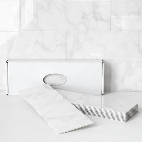 WALPLUS 28,5 x 14 cm @ 12 enheter vit marmor metro platt kakel klistermärke stänkstänk kakel färg klistra på plattor skala och klistra fast självhäftande väggplattor klistermärken för kök badrum kakel överföring WT1705
