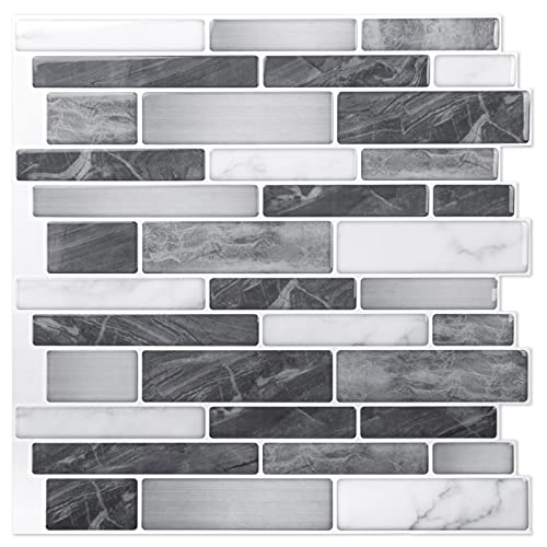 Art3d 10-ark Skal och Klisterplattor för Kök, Vinyl Dekorativ Väggpanel Grå Marmor Design, 30 x 30 cm