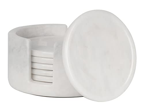 Radicaln marmor underlägg set rund 8,9 cm Verona handgjorda marmorunderlägg för hem och kök, dryckesunderlägg set med 6 med hållare, perfekta underlägg för dryck