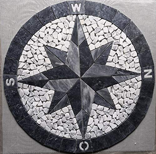 Estile Mosaico Marmor Rosone rund 80 cm kompass natursten vind ros mosaik kakel inlägg 077