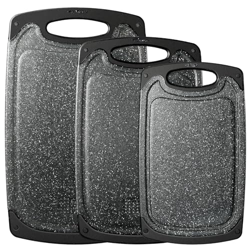 Skärbräda plast, skärbräda med marmorimitationsstruktur och juicespår och halkfria handtag, 3 stycken, BPA-fri, marmor, professionell, diskmaskinssäker