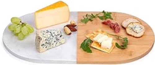 alpina Skärbräda och ostplatta – träbräda – köksbräda – 27 x 22 cm – 1,65 kg – bambu och marmor