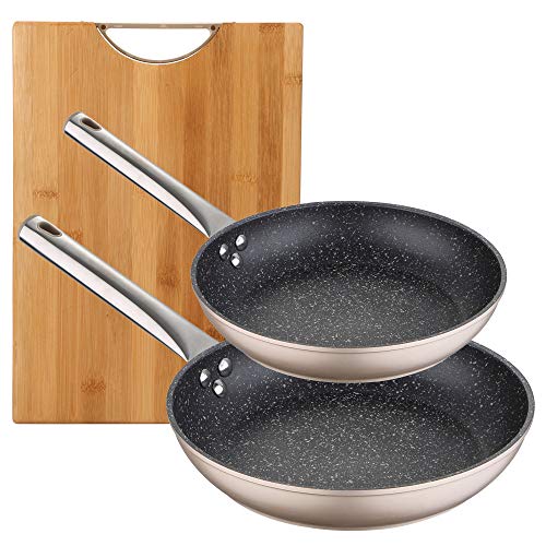Bergner Neon Gold Set - skärbräda och set kokkärl Ø20 och Ø30 cm, smidd aluminium, non-stick marmor, induktion, med rörformade handtag i rostfritt stål