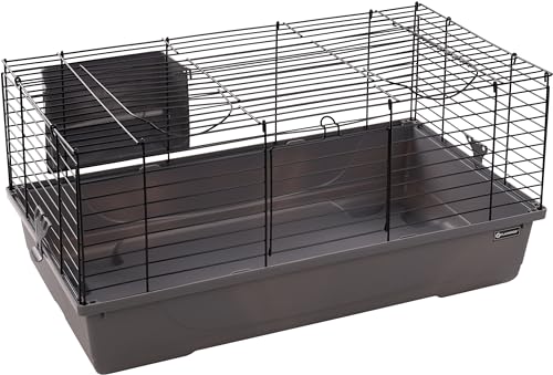 EUGAD frihage för kaniner eller marsvin, inhägnad, bur, smådjursinhägnad, svart, 144,5 x 108 x 71,5 cm