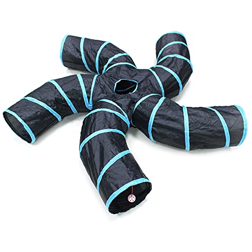 Bemodst Kattunnel av S-typ, med 2, 3, 4 eller 5 ingångar, hopfällbart S-format smådjursrör, interaktiv labyrint för hemmet, leksak med förvaringspåse för kattungar, valpar, kaniner och marsvin (5 ingångar)
