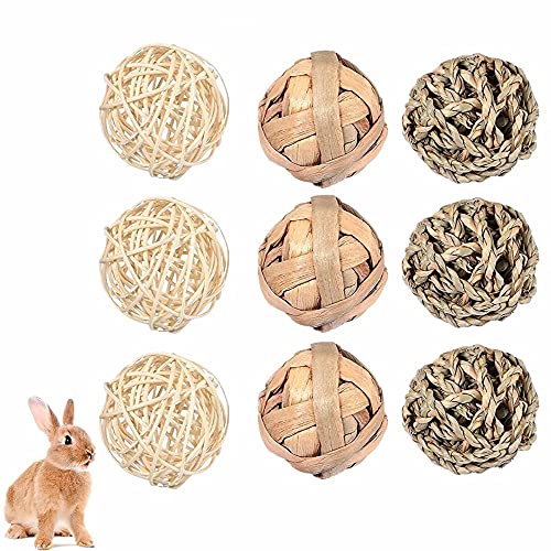 Voarge 9 stycken tuggbollar, små djur, tuggleksaker, gräsleksaker för kaniner marsvin chinchilla, kaniner, godsaker flätat sugrör, leksak för små djur (9 stycken)