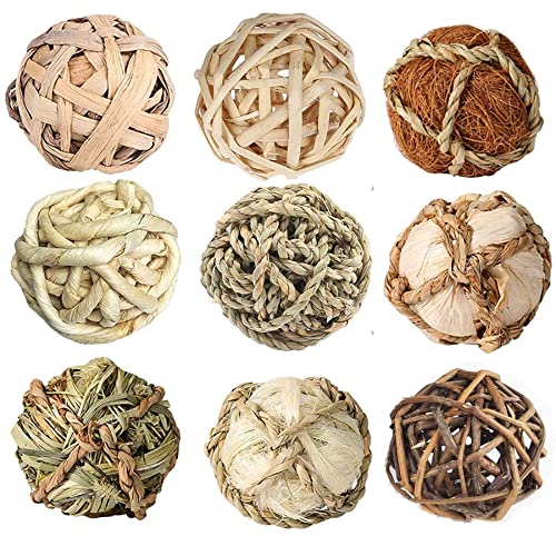 9 st tuggleksaker för kanin – smådjursaktivitet lek tugga gräsbollar och rullande leksaker för kaninkaninkaninkaniner, hamster, marsvin, chinchilla, ekorrar, råttor, möss