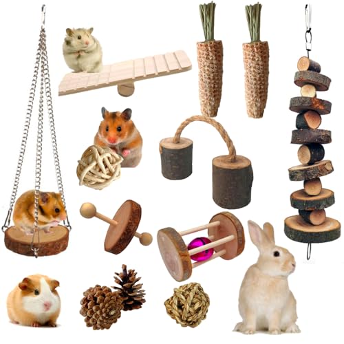 Ksvaye 14 Styles Kaninleksaker Naturliga tuggleksaker för marsvin Hamstrar Kaniner Molar Leksaker, Smådjur Tillbehör Tandvård för kaniner Chinchilla Hamstrar Gerbils, Handgjorda