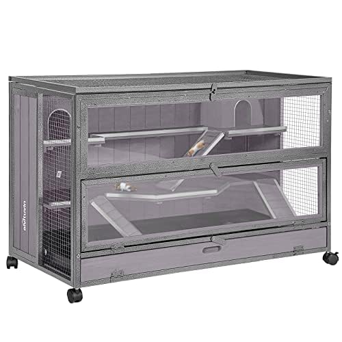 Hamsterbur i trä, smådjursbur med 4 nivåer, utfodringsstation, vipp, ramp, hyddor, marsvinsbur för dvärg- och syriska hamstrar,