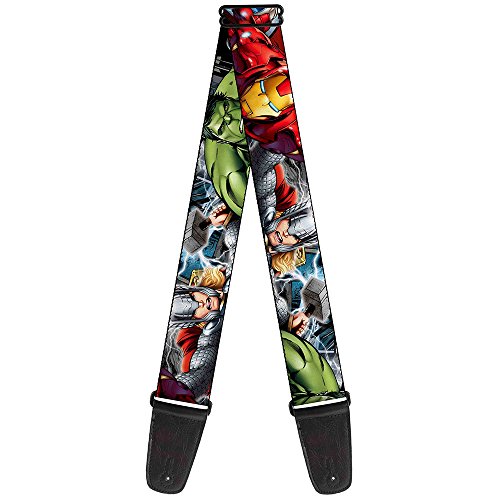 Buckle-Down GS-WAV012 gitarrrem Marvel Avengers 4 superhjälte poser närbild, flerfärgad, 5 cm bred - 74-137 cm längd