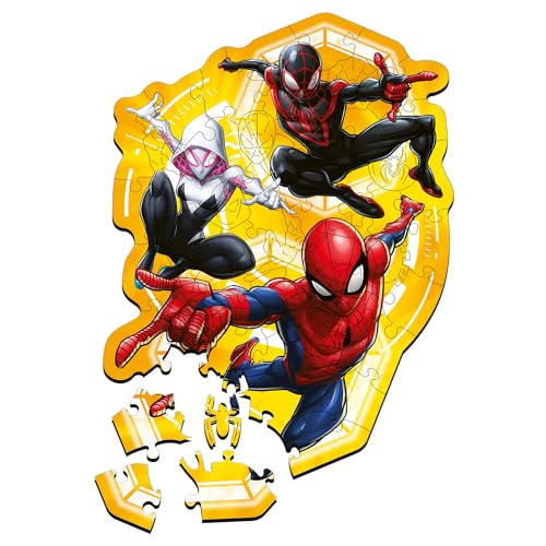 Trefl – Träpussel: Marvel Spiderman, Spiderman redo i aktion - 50 bitar, Formpussel Wooden Puzzle, Oregelbundna pusselbitar, 10 figurer, Modernt pussel för barn från 5 år