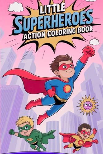 Little Superheroes Action Coloring Book: Fun and Easy Cartoon Hero Adventures for Kids Ages 4–8 | Cute Super Kids, Action Scenes, and Creative Drawing Fun boy and girl,