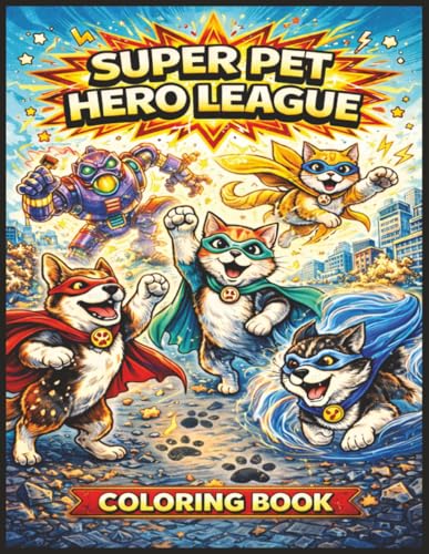 Super Pet Hero League Coloring Book: Coloring Book Super Pet Hero League A Superhero Animal Coloring Book for Kids Ages 8 +Dogs, Cats, and Comic-Style Adventures