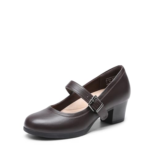 DREAM PAIRS dam Mary Janes pumps Chunky High Heel klänning skor tjock klack pumps för kvinnor, BRUN, 38 EU