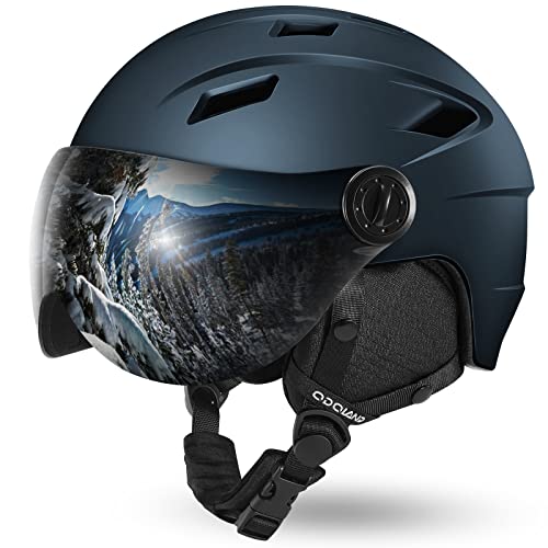 Odoland Helansiktshjälm med visir, sporthjälm för män och kvinnor, snowboardhjälm med mask, UV 400, skydd och vindtät, vintersporthjälm, blå, M