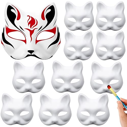 10 stycken Therian Mask, kattmask, vit kattmask, omålade kattmasker, gör-det-själv handmålad kattmask vit att måla, för cosplay, karneval, maskerad, halloween, gör-det-själv masker festtillbehör