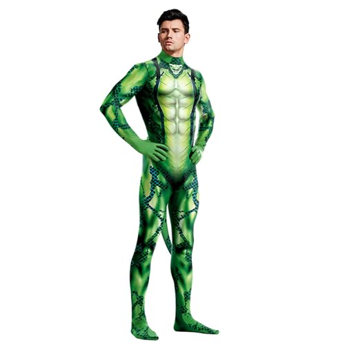Herr Halloween Cosplay Dräkt Djurtryck Body Stage Show Jumpsuit Julkarneval Helkroppsset Med Svans Maskerad Fancy Dress,Green-XXL
